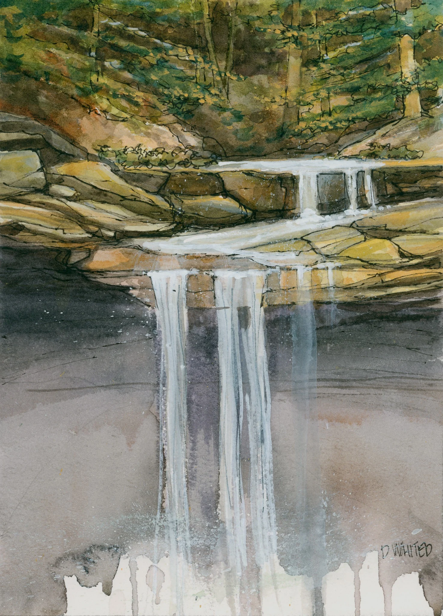 I was inspired by recent travels to do a couple of architectural pieces and one of a local waterfall that is a hidden gem.